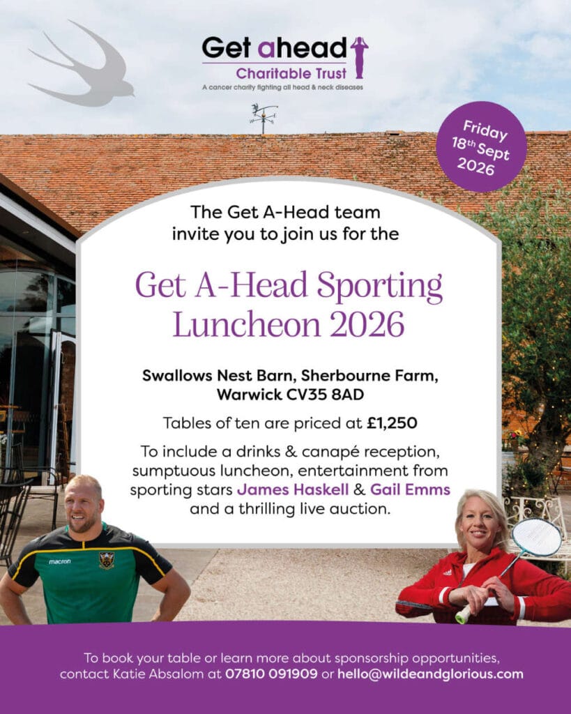 We are delighted to announce: Business & Sporting Luncheon, with Get A-Head: Friday 18th September 2026 To secure your place, contact Katie Absalom on 07810 091909 or email katie@wildeandglorious.com.